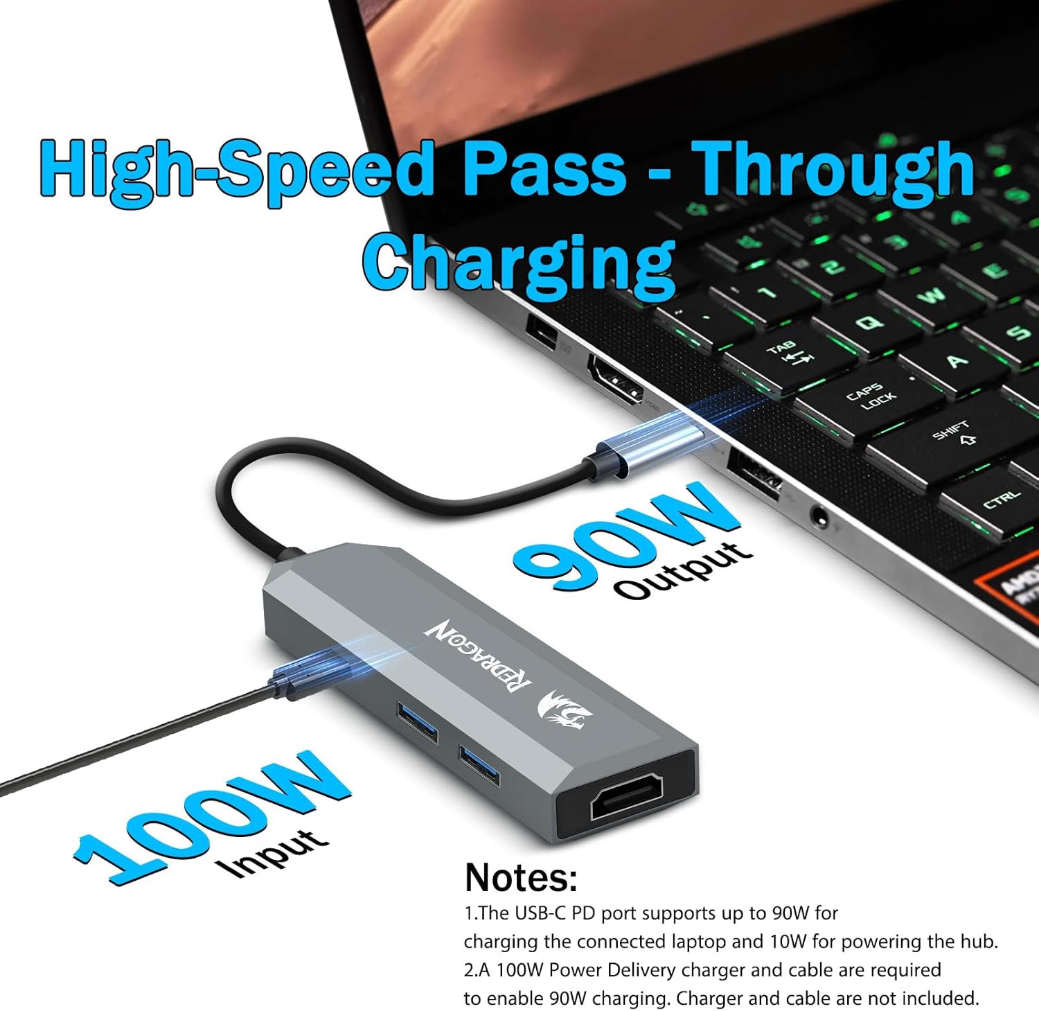Hubben understøtter high-definition video-output gennem sin HDMI-port, så brugerne kan tilslutte deres enheder til eksterne skærme, fjernsyn eller projektorer. Med understøttelse af 4K-opløsning ved 60Hz leverer 4-i-1 USB-C Hub med 4K 60Hz HDMI Splitter glatte billeder, skarpe billeder og nøjagtig farvegengivelse.