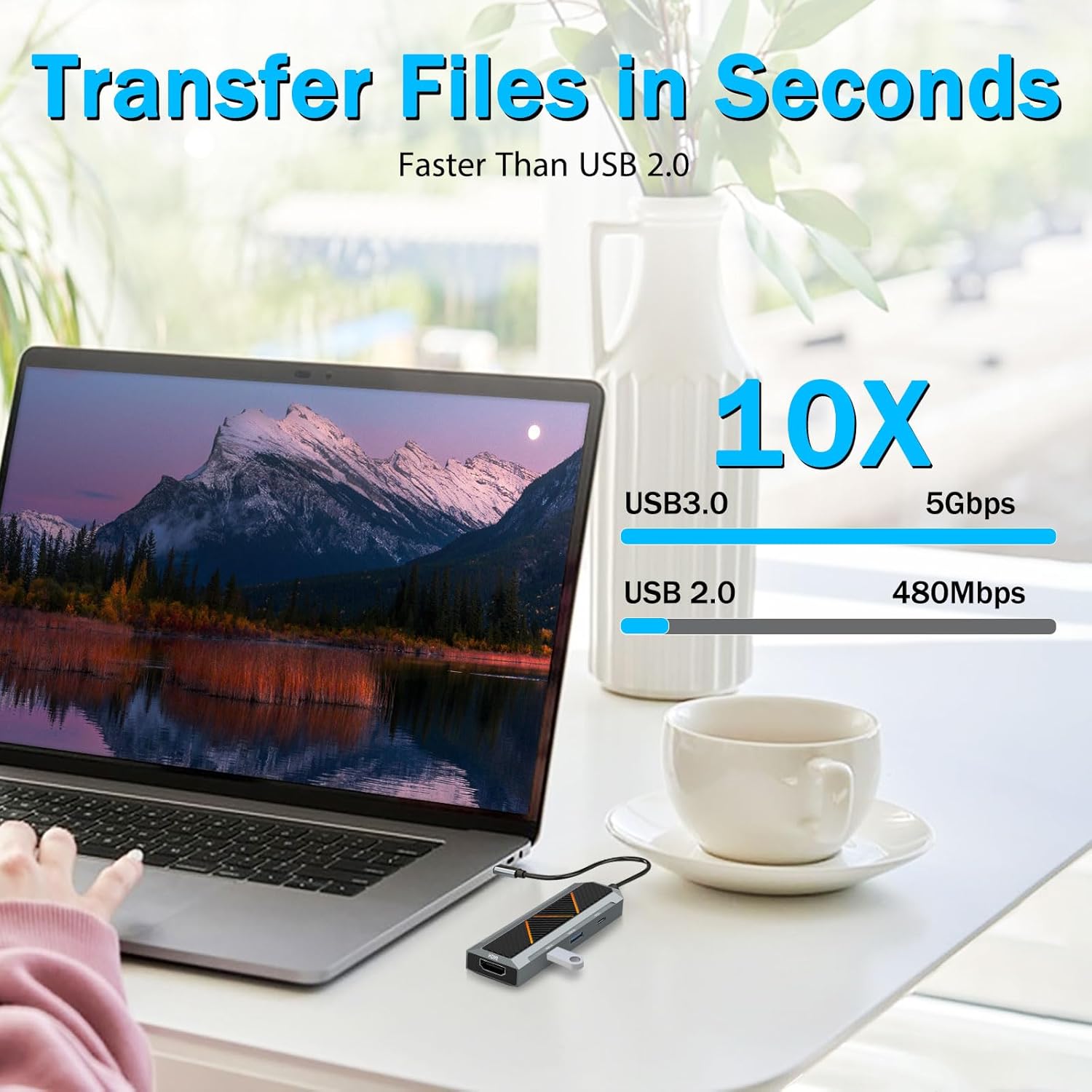 Højhastighedsdataoverførsel sikrer effektiv fildeling og enhedskommunikation, hvilket gør 4-i-1 USB-C Hub med 4K 60Hz HDMI Splitter velegnet til både kontor og kreative arbejdsmiljøer.