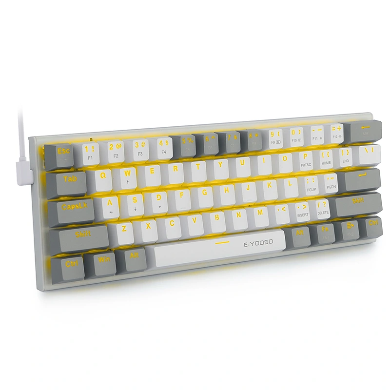Generelt kombinerer E-Yooso 61-nøgle Wired LED-baggrundsbelyst mekanisk tastatur avanceret mekanisk switch-teknologi, kompakt design og æstetisk belysning, hvilket gør det velegnet til spillere, kontorarbejdere og minimalistiske entusiaster.