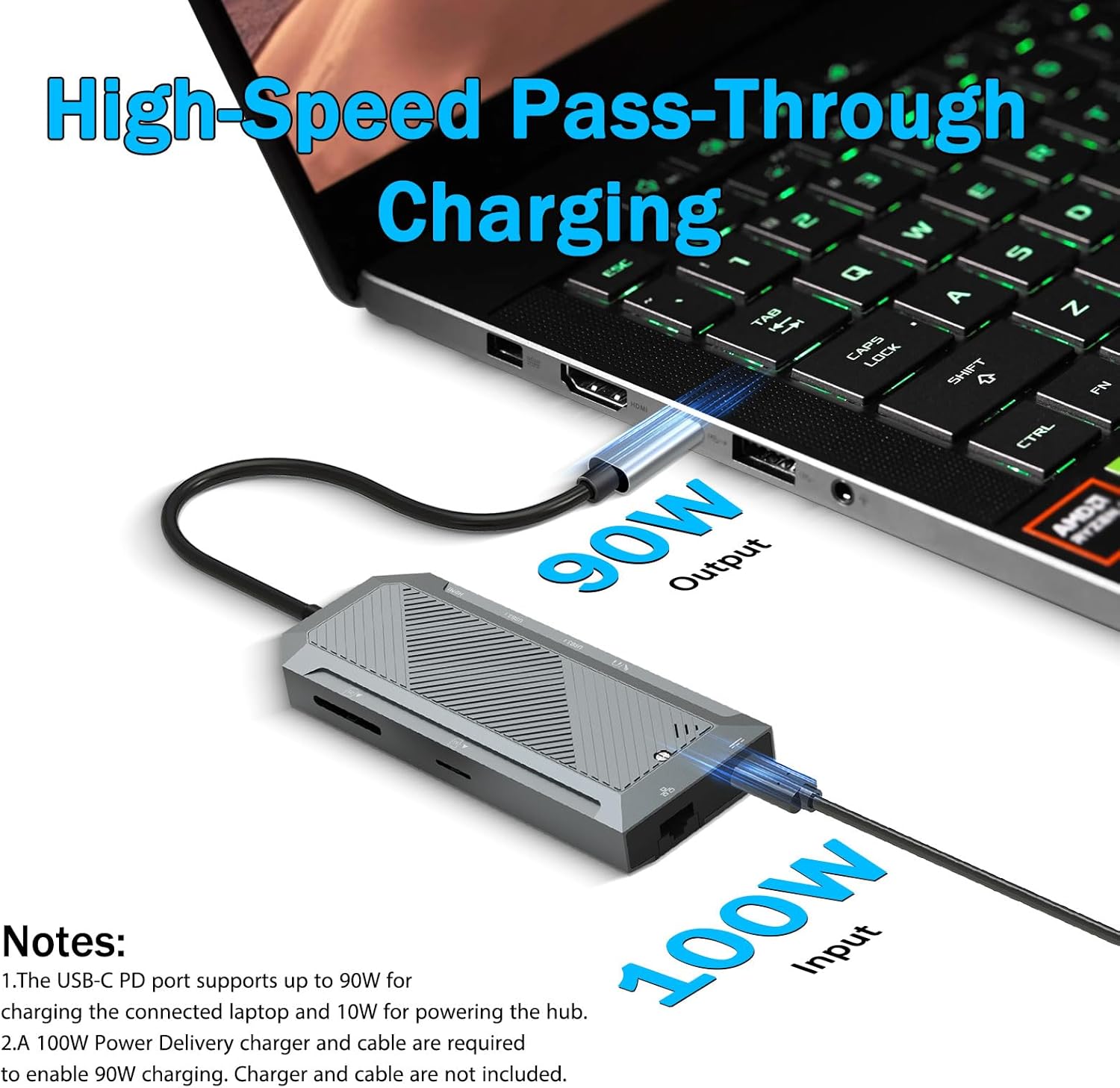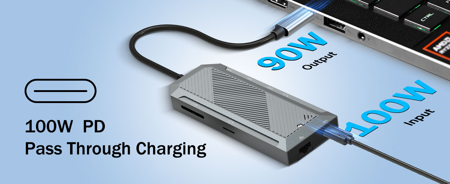 Understøttelse af strømforsyning: Op til 100W pass-through-opladning