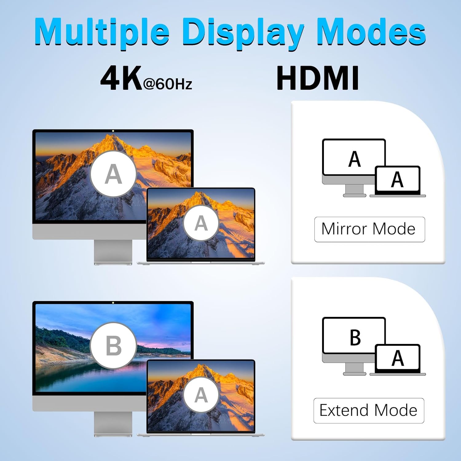 Hubben inkluderer en HDMI-port, der understøtter 4K-opløsning ved 60Hz, der leverer glatte billeder og nøjagtig farvegengivelse. Denne funktion er især værdifuld for fagfolk, der arbejder med grafisk design, videoproduktion og præsentationer.