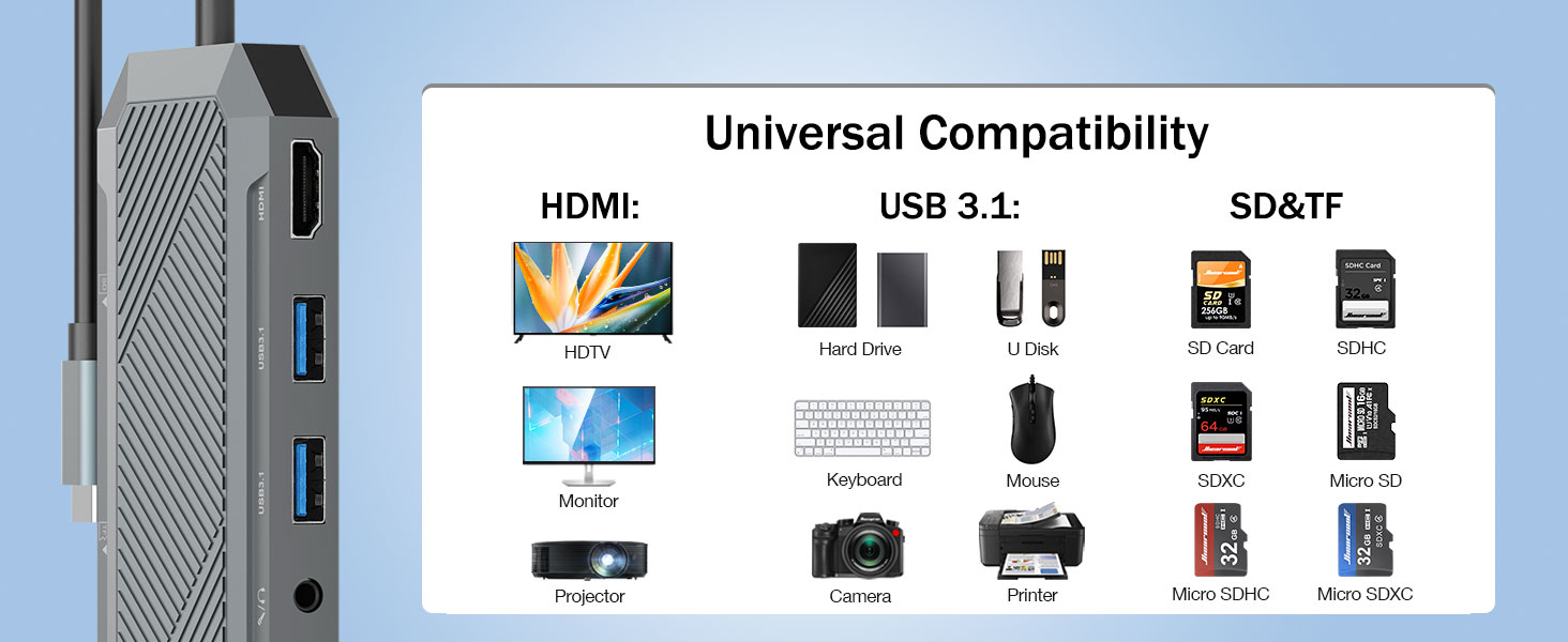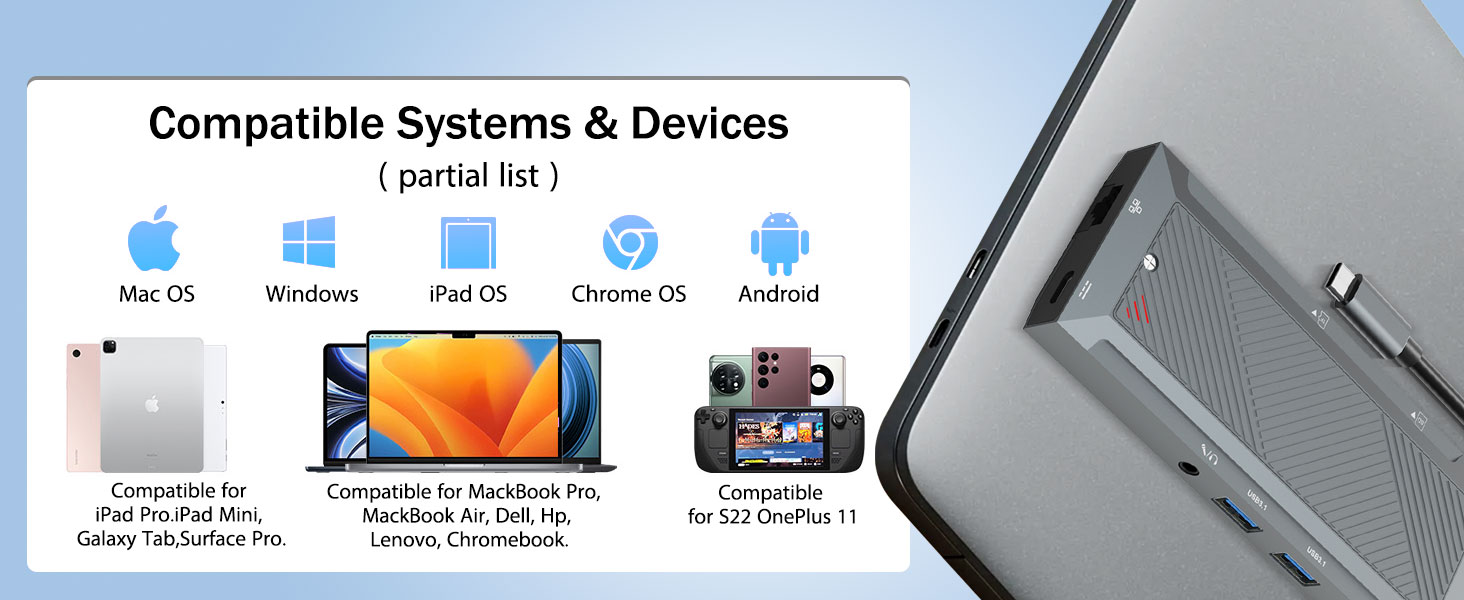 Uanset om det bruges til professionelt arbejde, kreativ produktion, forretningsrejser eller hjemmekontoropsætninger, tilbyder denne hub en praktisk og effektiv måde at maksimere ydeevnen af moderne enheder.