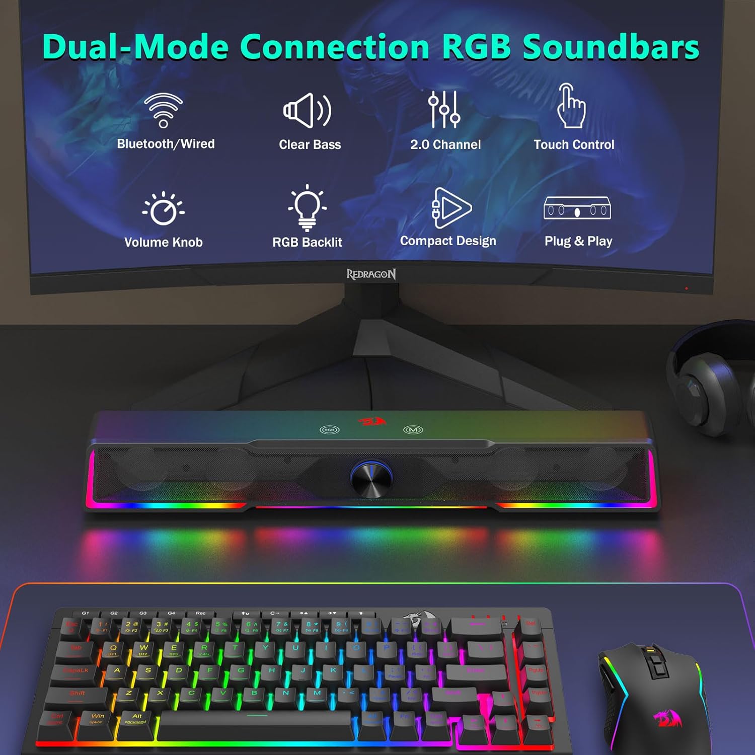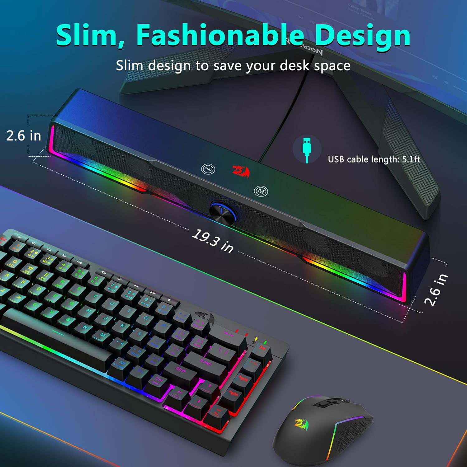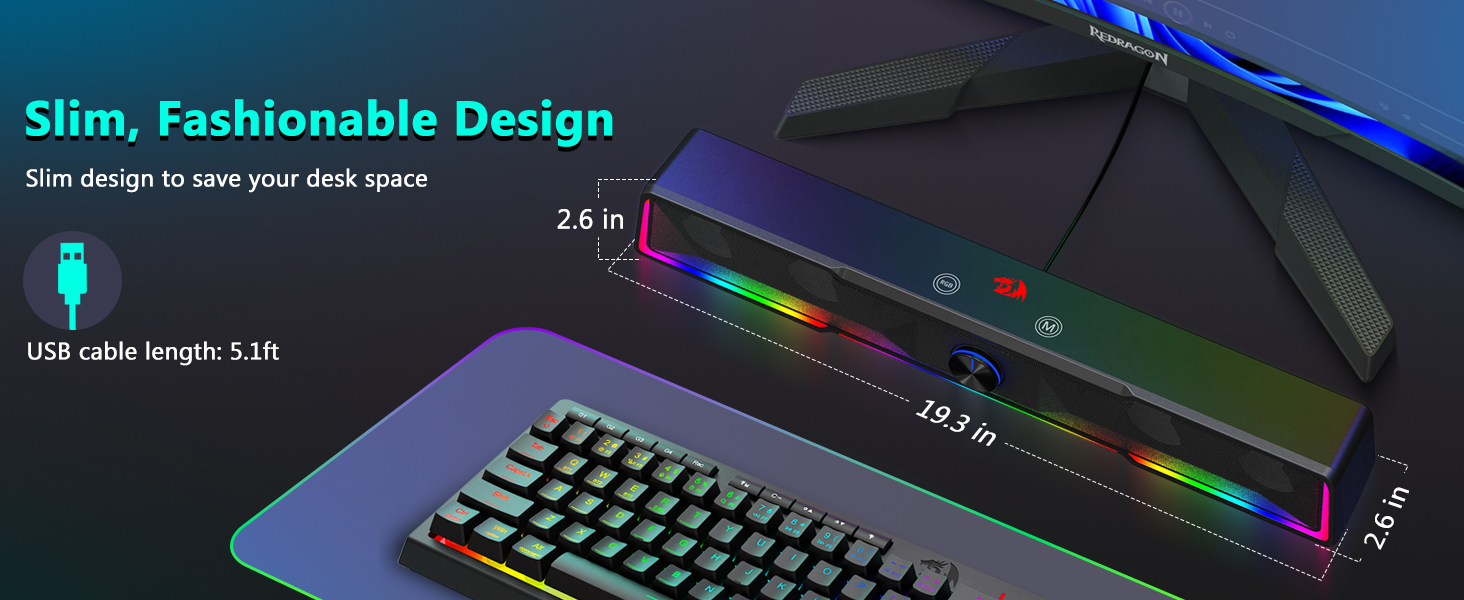 Den integrerede soundbar-struktur gør det muligt for højttaleren at fordele lyden jævnt over skrivebordsområdet, hvilket skaber et bredere lydfelt sammenlignet med traditionelle kompakte højttalere. Dette design forbedrer lytteoplevelser til musik, film, spil og onlinemøder.