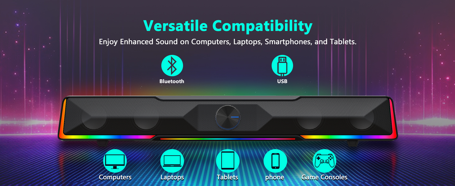 I modsætning til traditionelle voluminøse højttalersystemer passer denne højttaler i soundbar-stil pænt under en skærm eller en bærbar stativ, hvilket sparer værdifuld plads på skrivebordet, mens den leverer en fordybende lydydelse. Med både Bluetooth- og USB-kablede tilslutningsmuligheder tilbyder Black GS516 Bluetooth/USB Wired Connection Soundbar Volume Knob Computer-højttaler alsidig kompatibilitet med en bred vifte af enheder, herunder stationære computere, bærbare computere, tablets og smartphones.