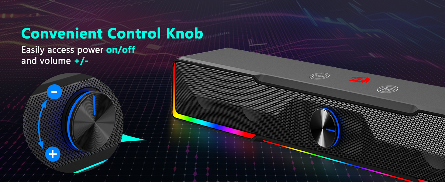Den integrerede volumenknap er en af de mest praktiske funktioner i Black GS516 Bluetooth/USB Wired Connection Soundbar Volume Knob computerhøjttaler.