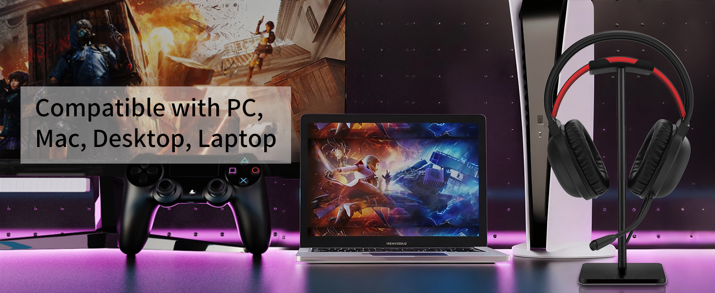 Dette headset er kompatibelt med en lang række enheder, herunder spillekonsoller, pc'er, bærbare computere og mobile enheder, der understøtter standardlydforbindelser.