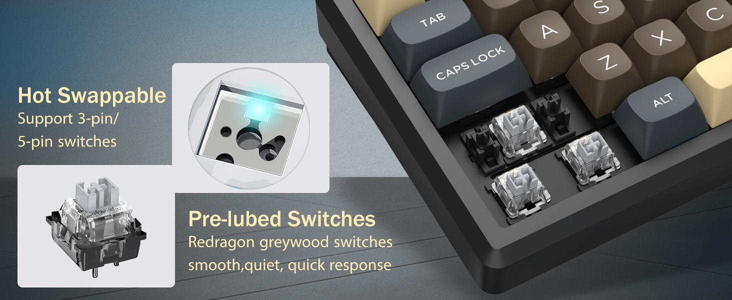 A: Tastaturet er designet til begge applikationer. Mekaniske switche giver ensartet feedback til indtastning, mens lav latenstid sikrer responsiv ydeevne til spil.