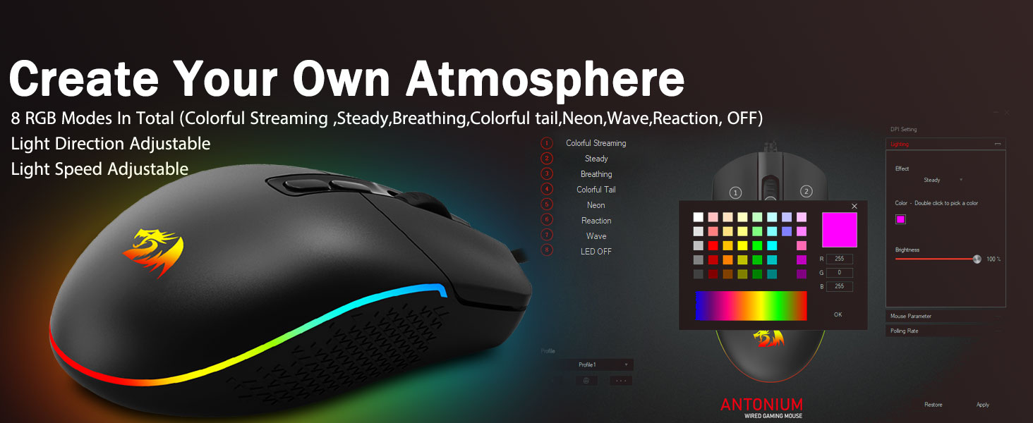 8 Anstændige RGB-baggrundsbelyste tilstande- Tænd for baggrundsbelysningen, og lav nogle drab på din spilslagmark. Den hypede dynamiske RGB-baggrundsbelyste stemning vil aldrig svigte dig, når du dekorerer dit spilrum, det ville være bedre med andet Redragon-tilbehør med lys tændt.