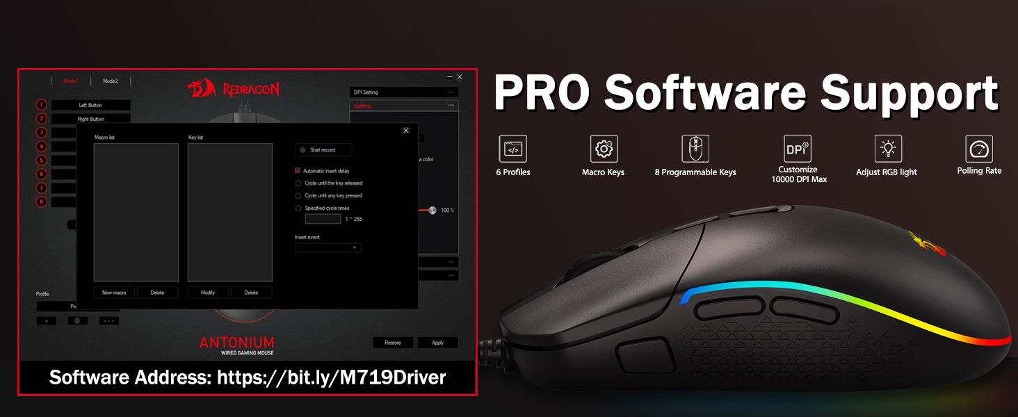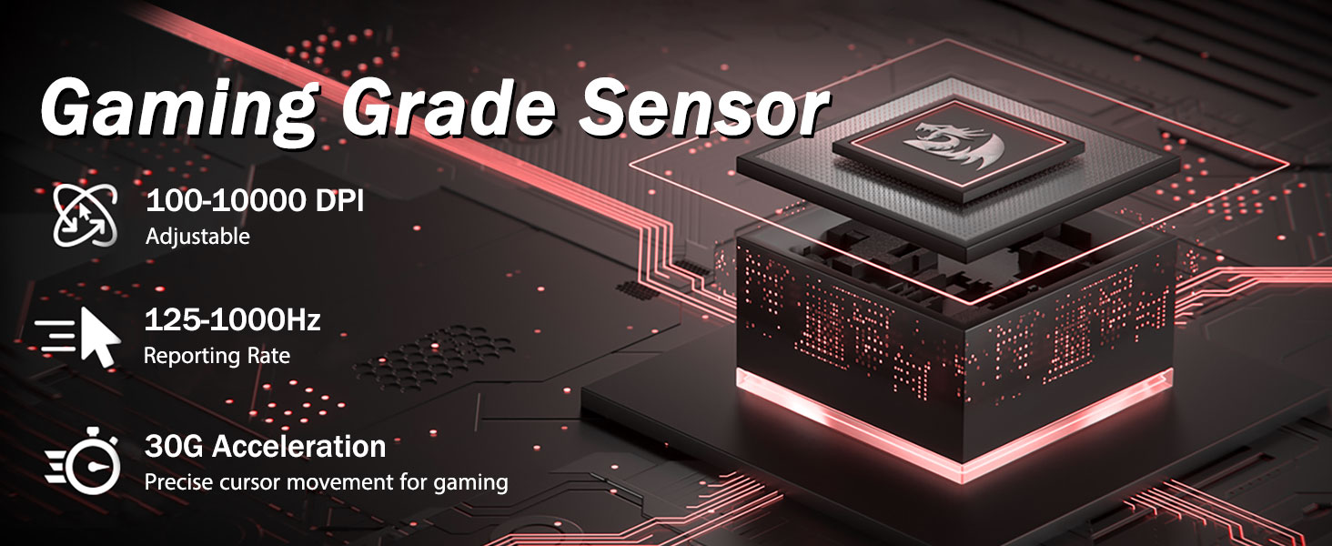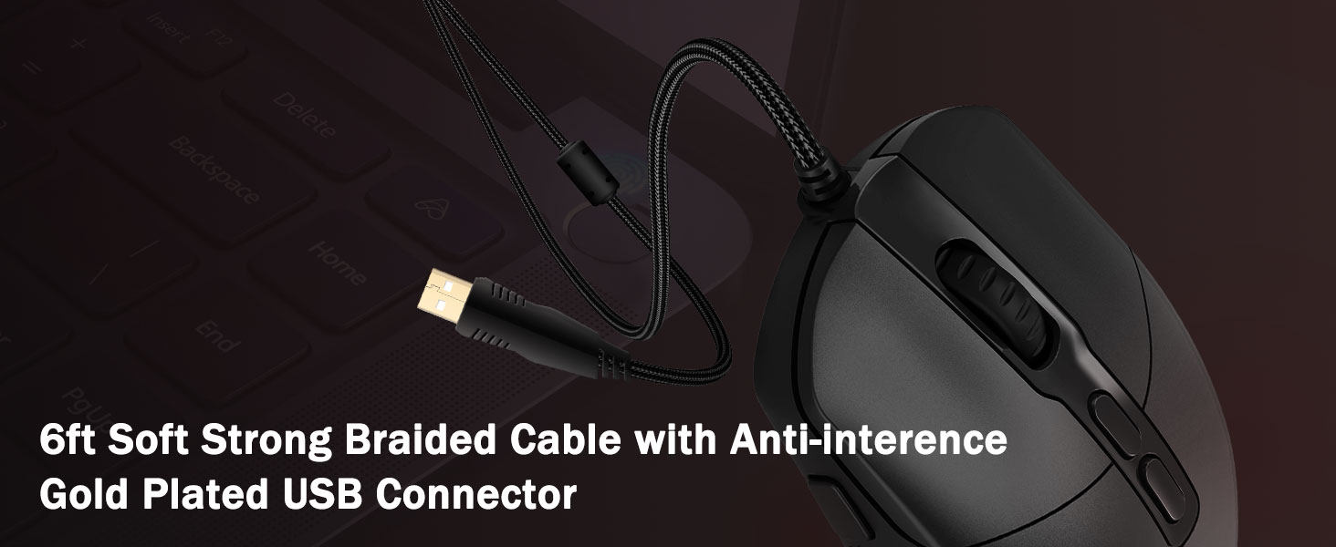 5 justerbare DPI niveauer og 4 polling rate- M719-musen er designet med 5 tilgængelige DPI-niveauer: DPI 400/800/1600/2400/4000. let at skifte mellem forskellige spilbehov. DPI kan justeres frit med ±100 fra 100 til 10000 via software for at opfylde alle dine behov. 4 polling rate er justerbar: 125Hz/250Hz/500Hz/1000Hz, høj polling rate sikrer en jævn og hurtig bevægelse.