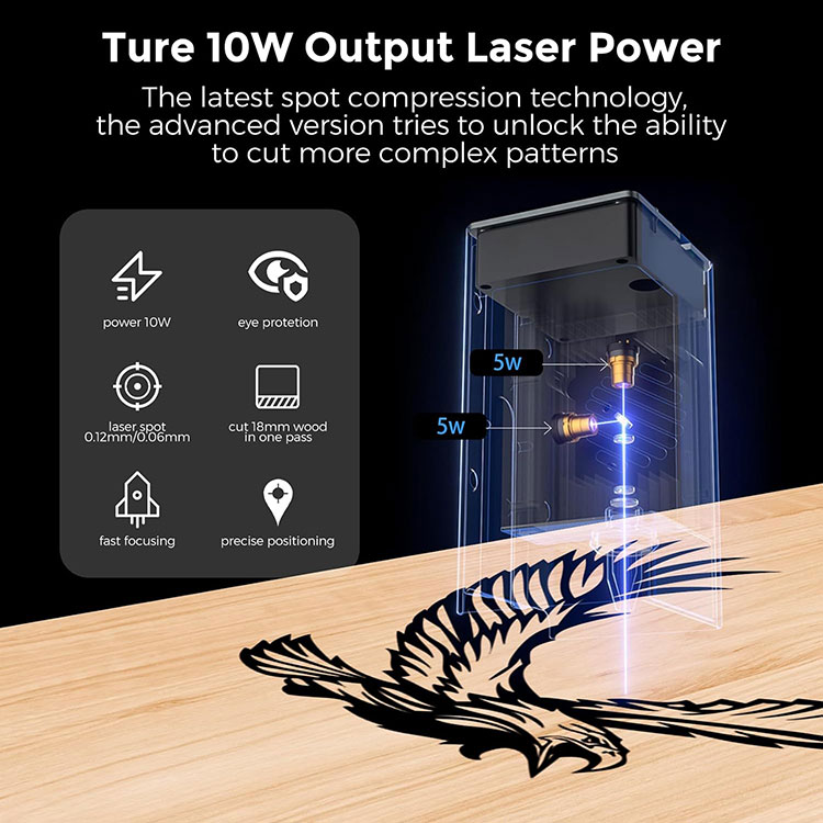 · 【Nøjagtig gravering og skæring】Det fine punktfokus på 0,06 x 0,06 mm giver mulighed for præcis kontrol af graverings-/skæringsnøjagtigheden til inden for 0,004 tommer og genplaceringspræcision til inden for 0,007 tommer. Dobbelt stepmotor og et indbygget 32-bit bundkort med et integreret aluminiumslegeringsdesign giver stabilitet under højhastighedsbevægelser. Ved at indstille parametrene samtidigt, kan farverige designs også graveres.