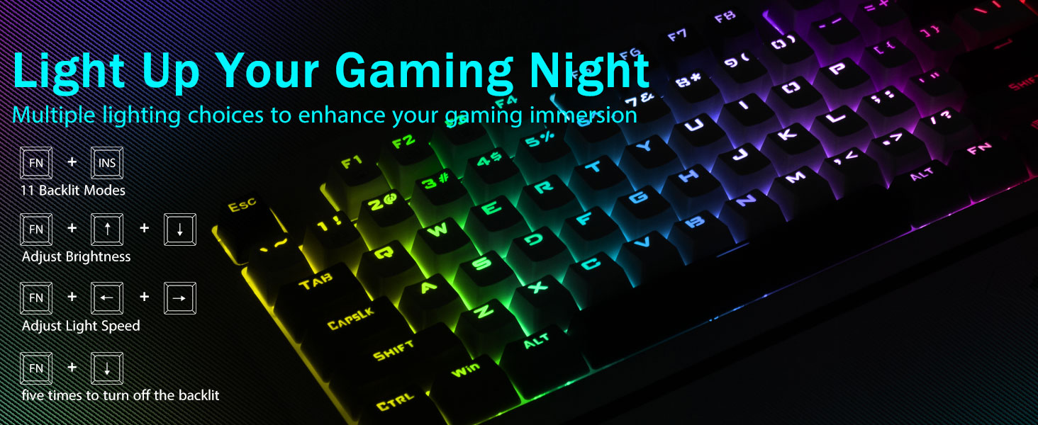 【Rainbow baggrundsbelyst tastatur for en fordybende oplevelse】Oplys dit skrivebord med 11 dynamiske baggrundslystilstande, 5 justerbare niveauer af hastighed og lysstyrke. Dette tastatur er en game-changer til dit spilopsætning, hvilket forbedrer dit humør og fordybelse, især i omgivelser med svagt lys. De ultra-holdbare ABS-taster med dobbelt indsprøjtning sikrer en krystalklar, ensartet baggrundsbelysning, der forbedrer din skrivenøjagtighed selv i mørke.