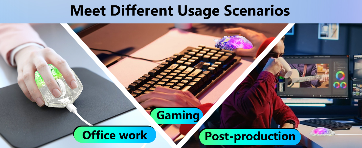 Ud over spil fungerer musen godt i kontormiljøer og understøtter opgaver som dokumentredigering, browsing og datahåndtering.