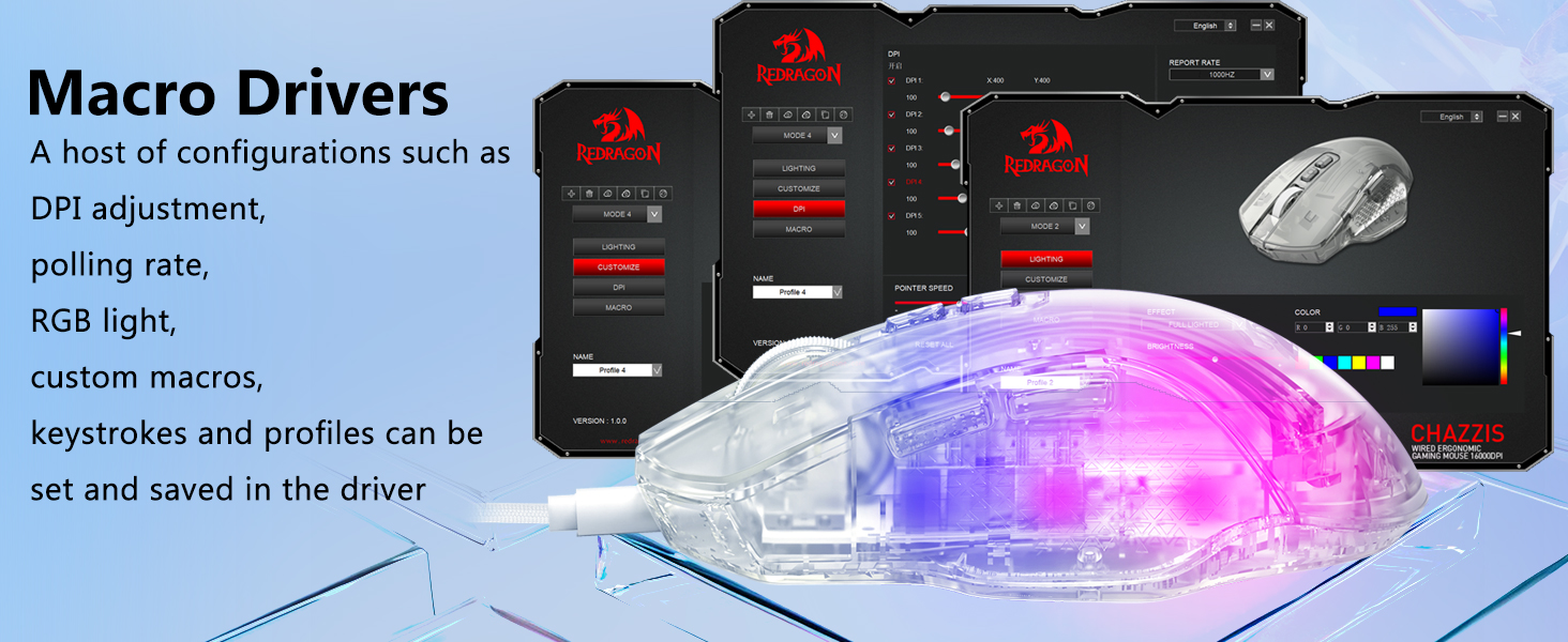 De justerbare DPI-niveauer tillader tilpasning baseret på brugerpræferencer, hvilket gør det velegnet til forskellige spilgenrer og arbejdsgange.