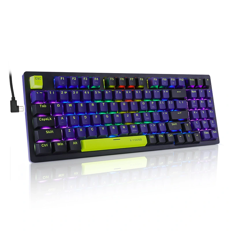2. 2. Fremragende rød switch og bule switch: E-OOSO mekaniske tastatur bruger rRed switch og bule switch, 50 millioner tastetryk levetid, 2,0 mm afstand til aktivering, 45 g aktiveringskraft 3. Hot-swappable og dobbelt indsprøjtning Keycap: Hot-swap PCB giver dig mulighed for frit at udskifte 3-bens kontakter uden problemer med lodning